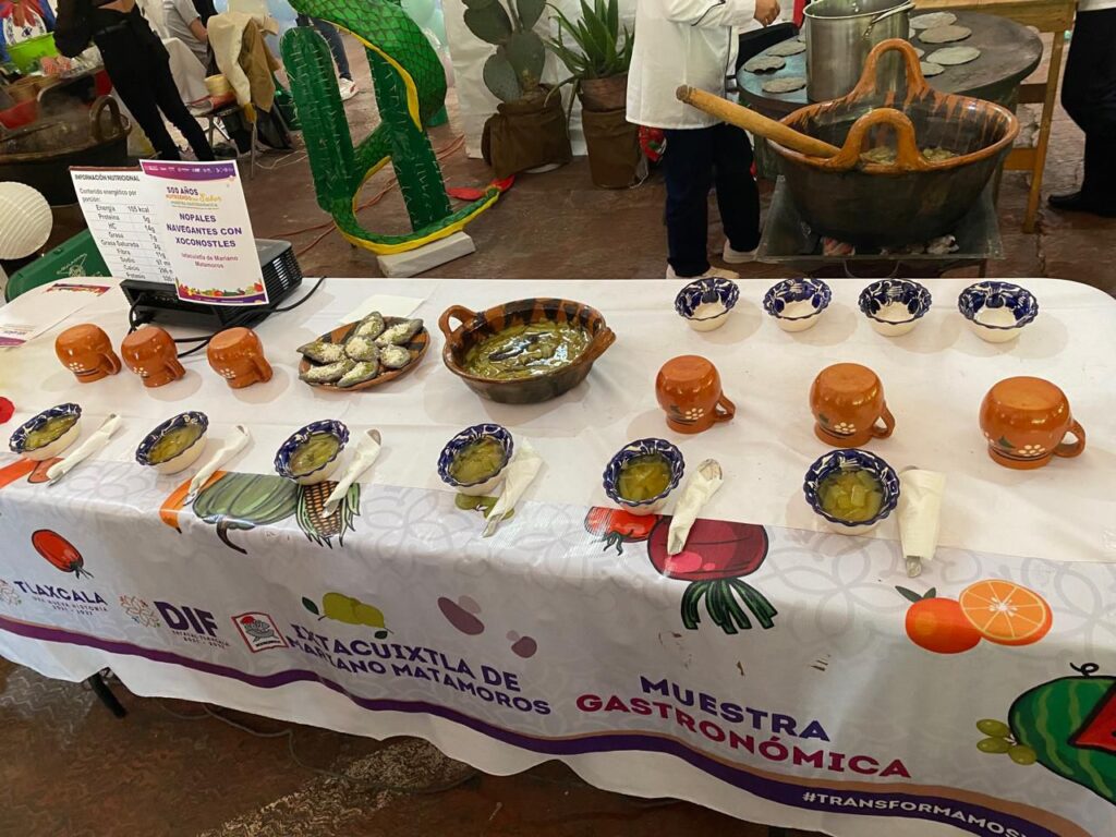 En esta importante muestra, Ixtacuixtla presentó el platillo típico de Nopales Navegantes con Xoconostle, acompañado de tlacoyos recién hechos, una combinación de sabores que representa la historia, la identidad y la herencia de la cocina local. Estos platillos fueron degustados por la Gobernadora Lorena Cuéllar Cisneros y la presidenta honorífica del SEDIF, Mariana Espinoza de los Montero Cuéllar, quienes reconocieron el valor de preservar y compartir la gastronomía tlaxcalteca.