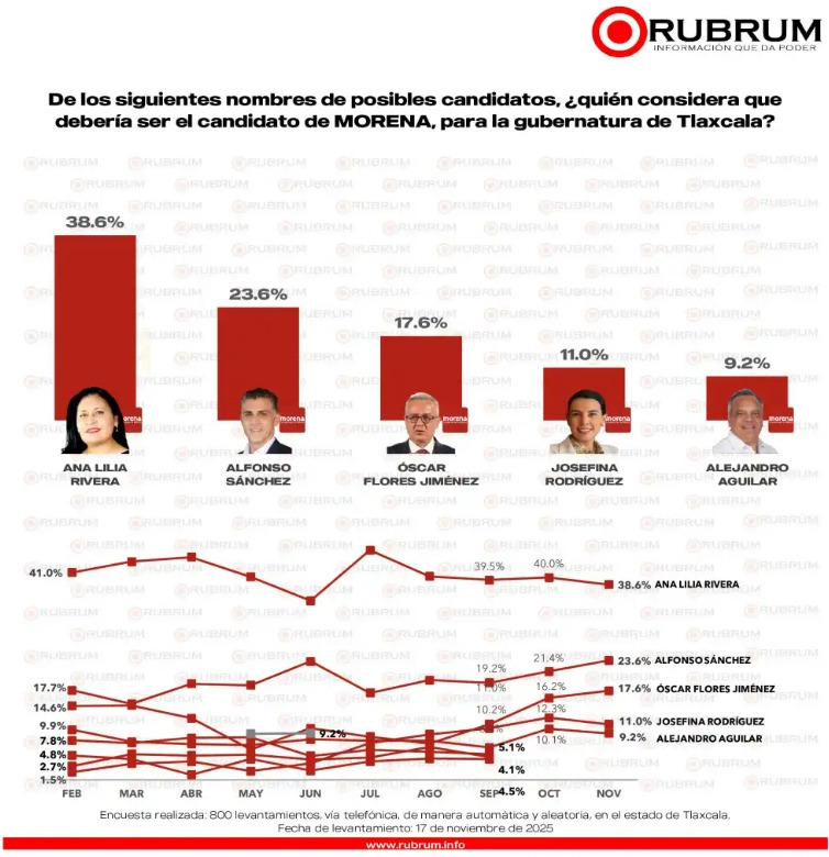 La encuestadora RUBRUM dio a conocer los resultados más recientes sobre preferencias electorales en Tlaxcala, tanto por partido político como al interior de Morena, rumbo a la elección de gobernador en 2027.